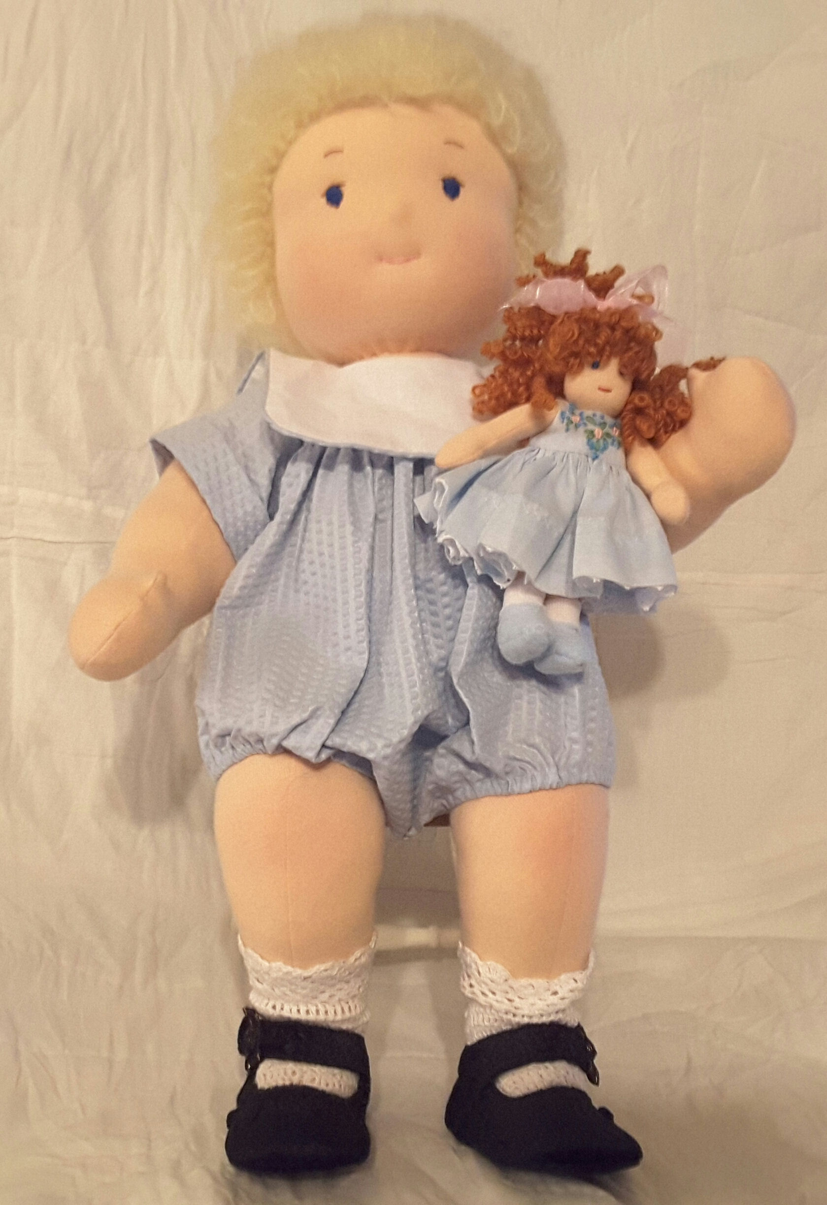 This baby is based on the Waldorf doll pattern called "Floppy Baby" by Lali Doll Nursery, she is a weighted 12" doll with incredible cuddle power.