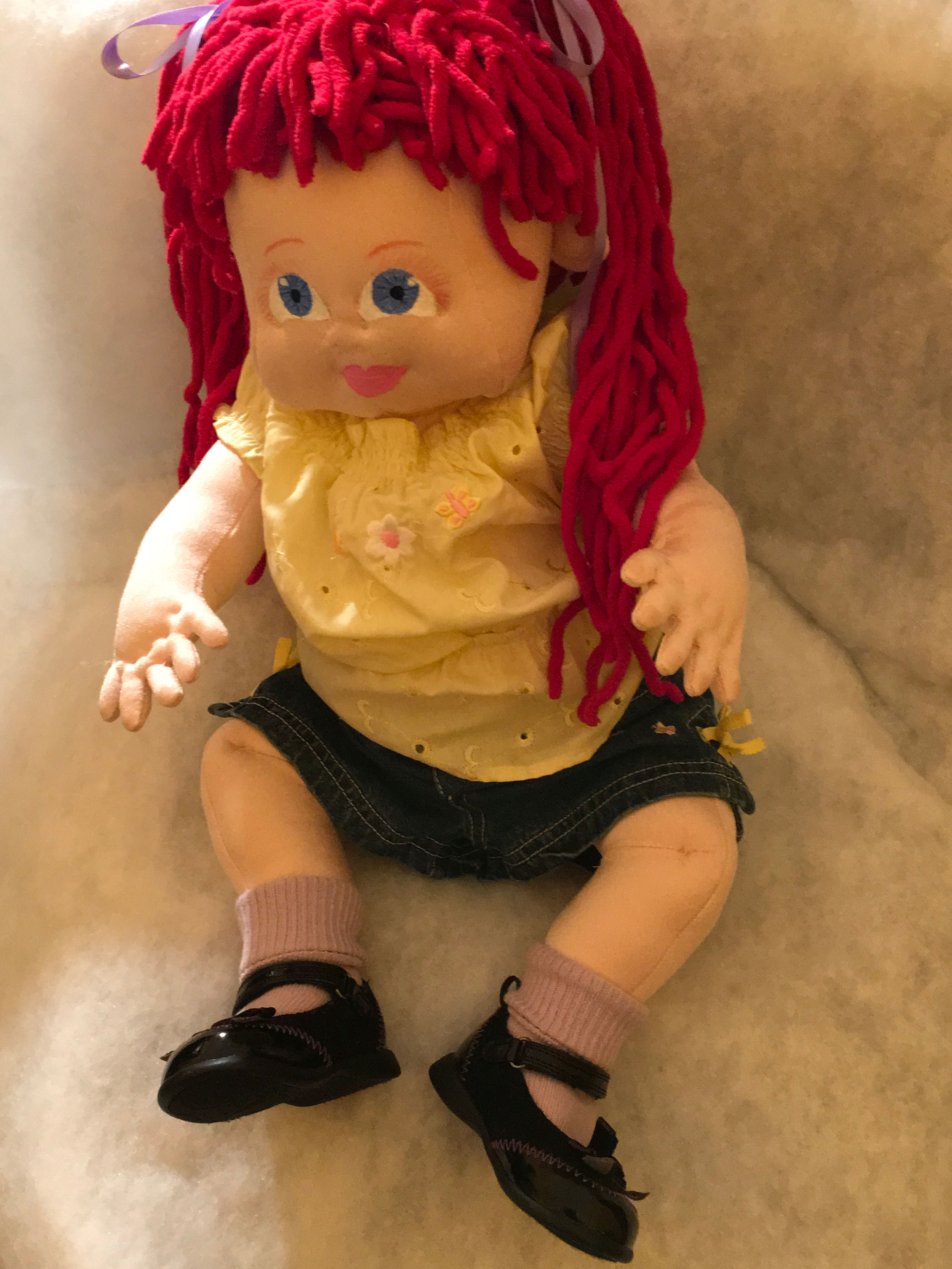 This doll is 22" and she was made with Judi Ward's Turnip Truck Tots Doll Pattern with craft velour.