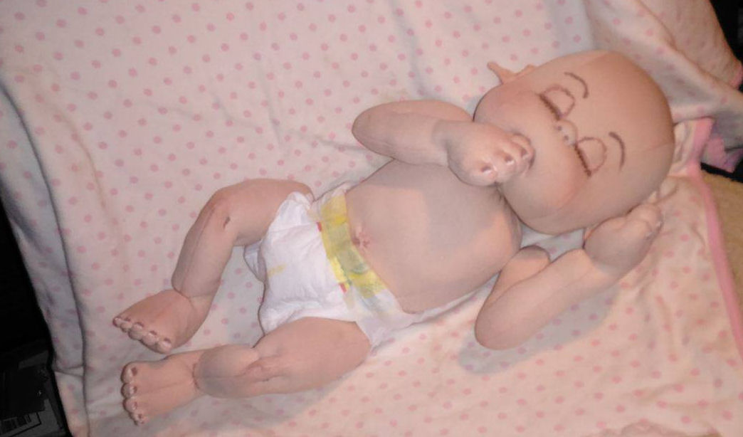 Rebecca has a cute and chubby build. Her hands, feet, tummy, and bottom is needle sculpted. She can sit all by herself like a six month old baby. Her face is hand painted with more needle sculpture to highlight her face. An artist pencils was used for the eyebrows and eyelashes. The pigtails are made up of yarn that has been hand seen one strand at a time. Finally her outfit and shoes are brought babies clothes and shoes discount store.