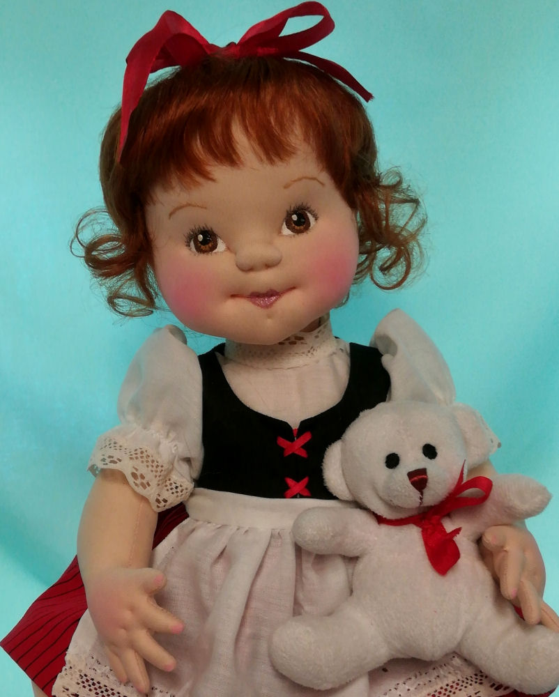Isabella is approx. 22" made from an original pattern designed by me. She is made from Windsor Ponte and is fully jointed and sculpted. Isabella's facial features are done with a combination of colored pencils, paint, and chalk.