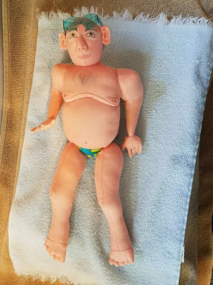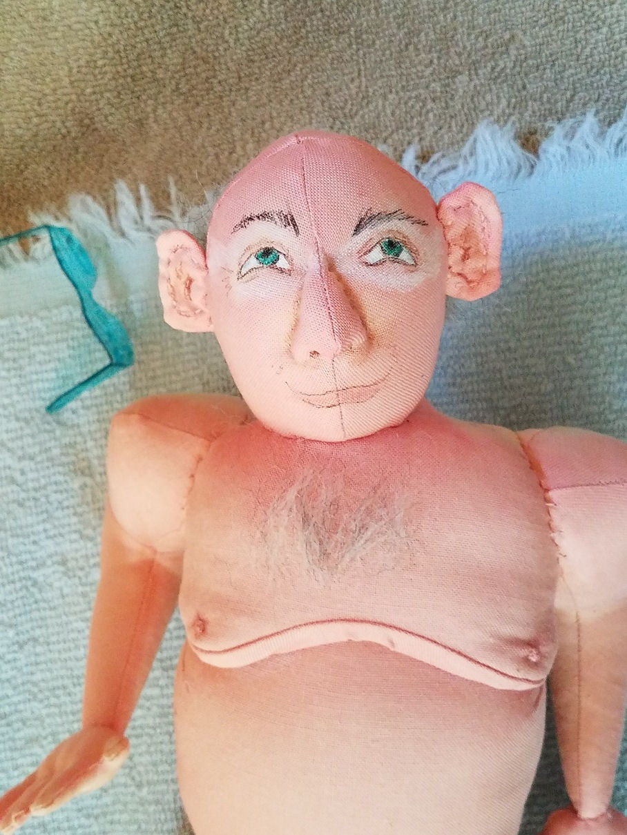 This is a Jill Maas Design, the Father of the Bride doll. I named mine the Pappy doll... I needle felted the hair on his head and his mustache and eyebrows. He stands about 16 1/2 '' tall.