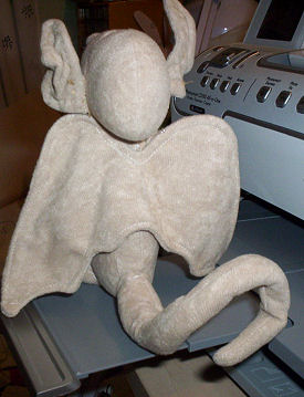 The doll's name is Galin, baby gargoyle, created by Shelly Hawkey. I bought the pattern from Dollmakers Journey. I used pipecleaners in his ears , fingers and tail to make them poseable. I sewed on his legs and tail and hot glued his arms, ears, and wings, it wasn't as hard as I thought it would be.