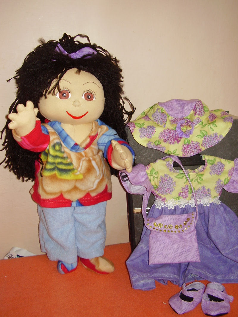 old cloth baby pattern. Her dress is my own design and her shoes were