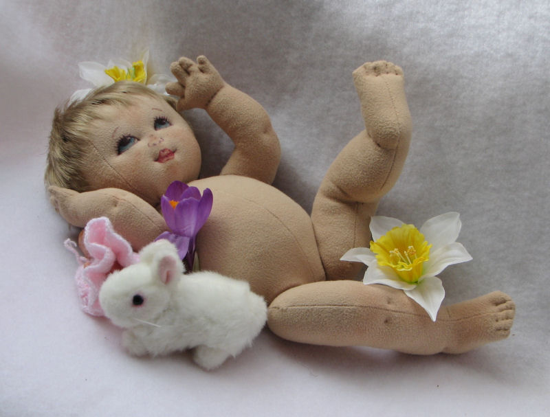 Baby Anne is a spring baby, made from doe suede, stuffed with sheep's roving