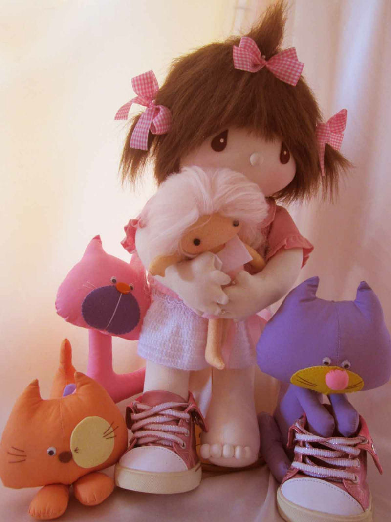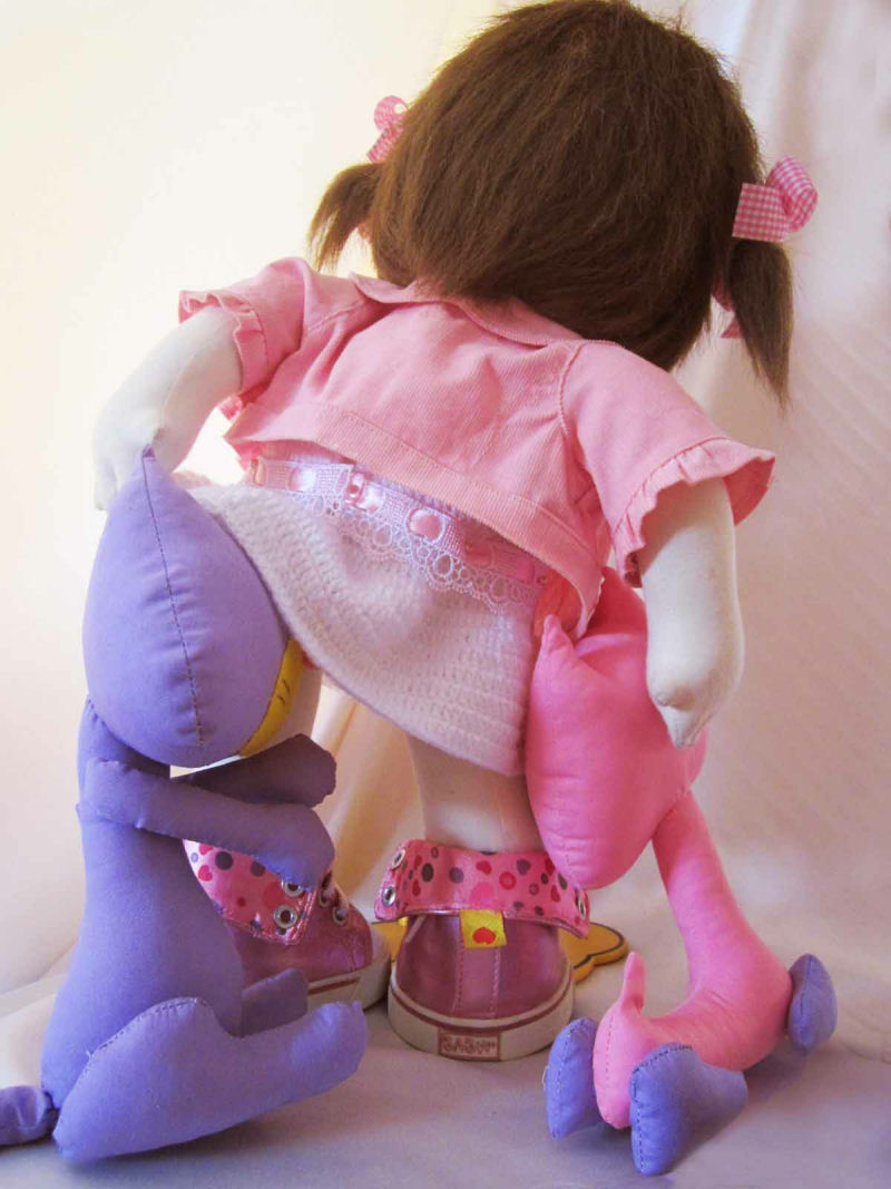 Emily is 18 inches tall, and is made of cotton jersey fabric. I used a very simple pattern drawn by me.