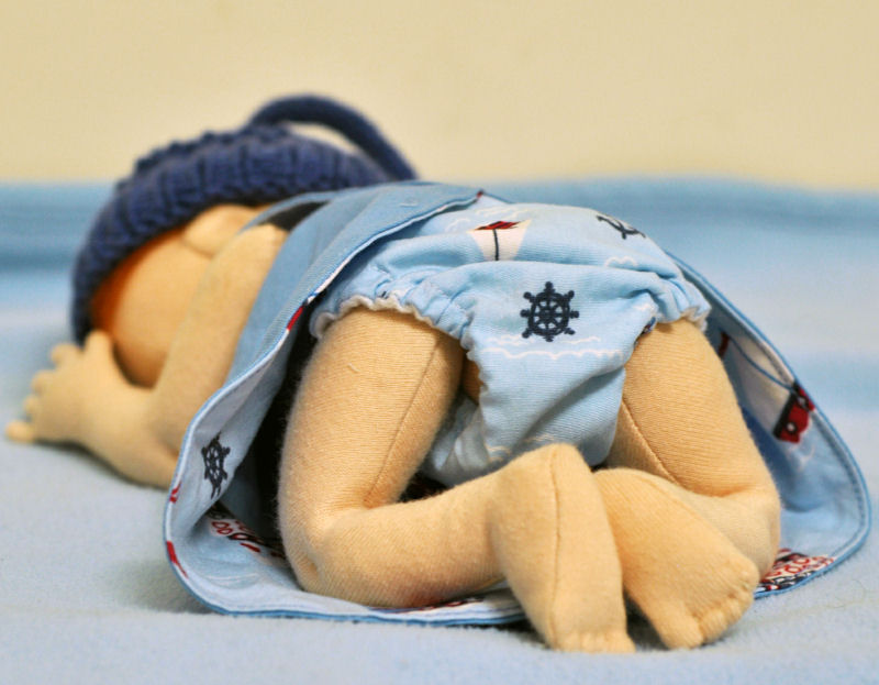 Declan was made to help me design angel diapers and hospital smocks for charity, so he is dressed in hand-made diaper, smock, and hand-knitted hat, for a memorable last cuddle. Most babies born this early have no clothes that fit properly, while their parents hold them and say goodbye, so Declan is helping me to change that.