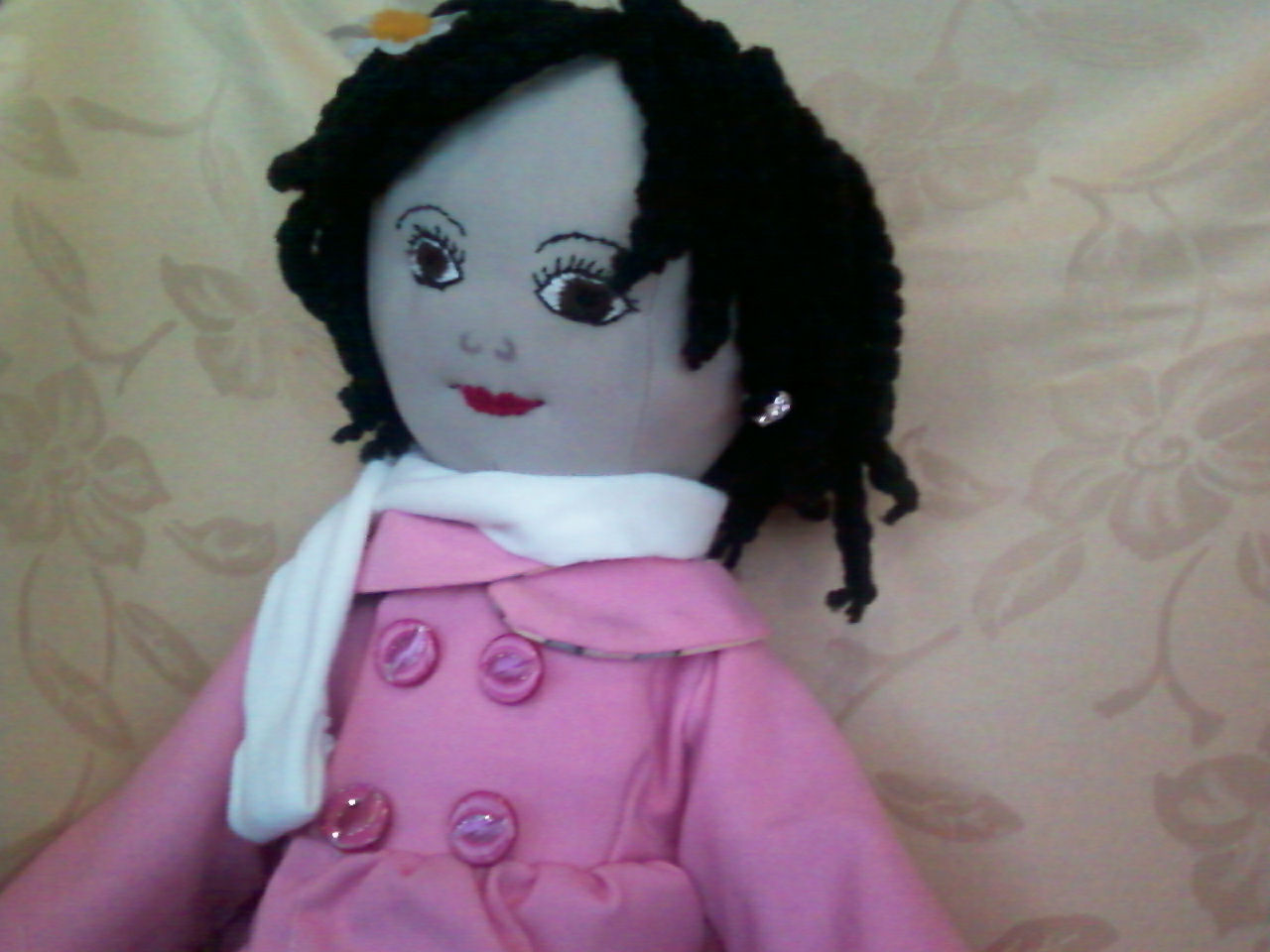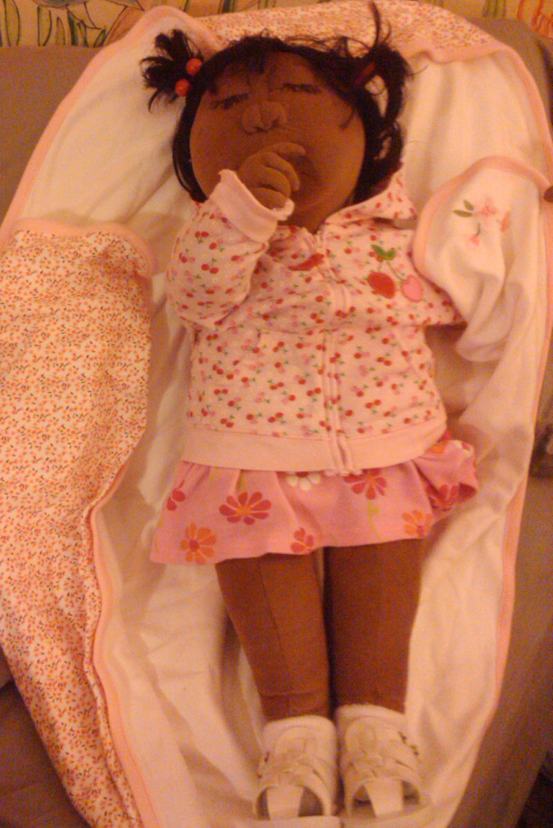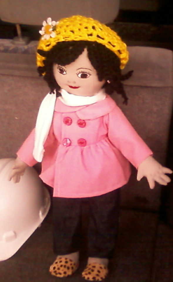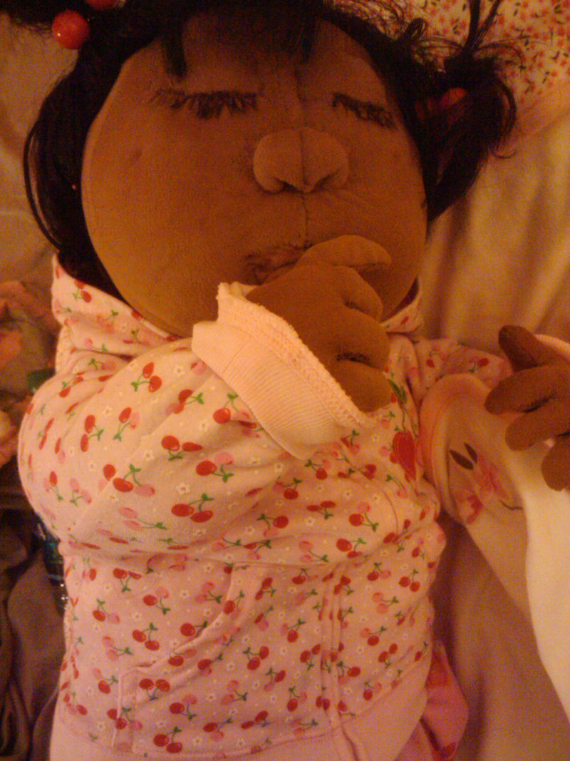 Tammys Outfit is handmade as well as her slippers her hair is a rope type fabric that I picked up at a thrift store I painted het skin with fabric paint and glue...