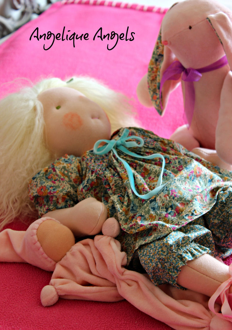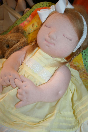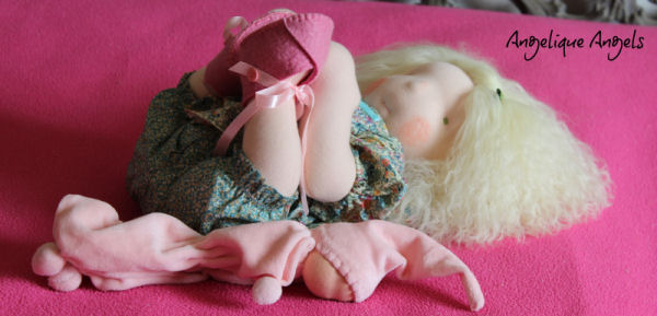 An Angelique Angels baby doll using an adaptation of the Nurture Baby pattern, designed by Molly Jones.