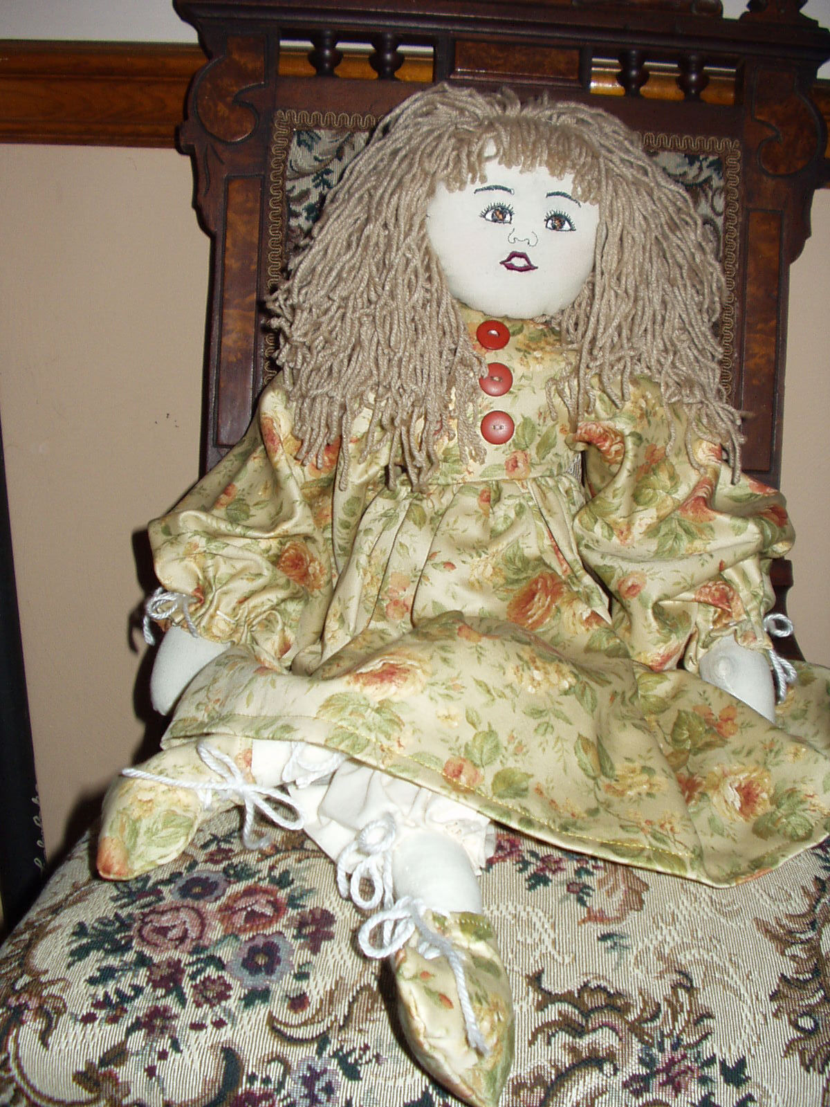 I am a nurse, wife, seamtress, doll doctor and dollmaker. I love the older, simpler dolls. Dolls to play with. I have made a lot of dolls, starting with the 2 piece teddy bears I started making at age 6 or so.I also repair old dolls and dress them for friends. Love to restore a old friend to somebody, specially if done as a surprise.