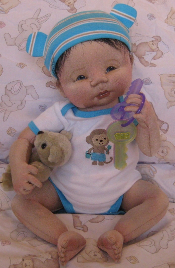 I designed "Justin" to resemble my youngest Son, as a Newborn.