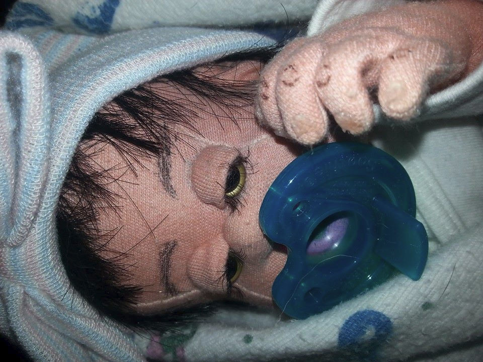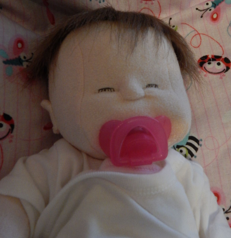 She has an open mouth and will take a pacifier, bottle or her own fingers. they are wired and can be posed. she has finger nails and toe nails. details of knuckles and lines on palms of hands and bottom of feet. her hair is plugged in. (it took 2 months just for that hair.)