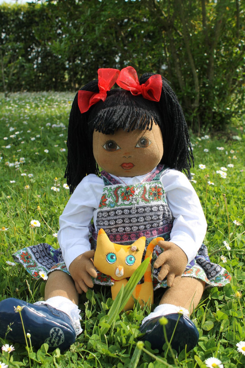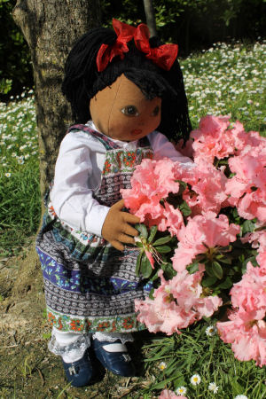 "Louane" is stuffed with pure wool, is built with the technique of a Waldorf doll and measures more or less 16.5'' of height.